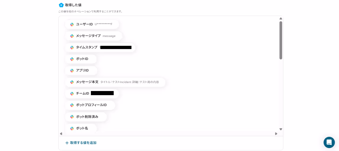 ※「取得した値」は変数となるので、メッセージからデータが抽出される度にそのデータを活用することが可能です!