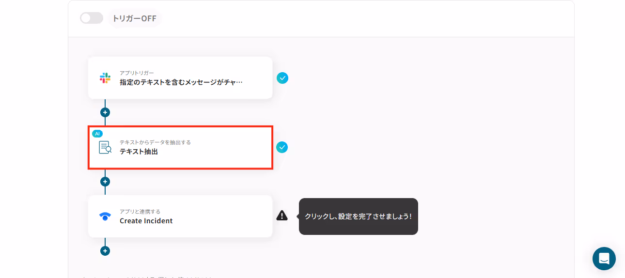 これで、「Slackで指定のテキストを含むメッセージがチャンネルに投稿されたら、StatuspageにIncidentを作成する」フローの完成です!