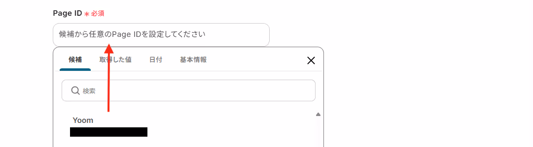 Page IDは、枠内をクリックし表示される候補から選択してください。
