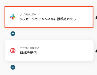 例えば、Slackへの投稿をきっかけに、指定の電話番号へ自動でSMSを送信するといった連携が実現できます。