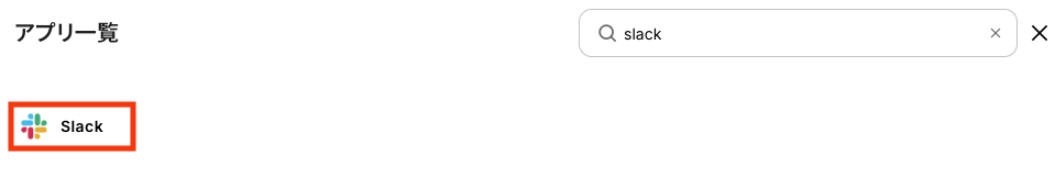 新規接続を押したあと、アプリのメニュー一覧が表示されるのでSlackと検索し対象アプリをクリックしてください。