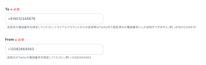 - Account SIDとAuth Tokenの確認方法については、こちらをご参照ください。