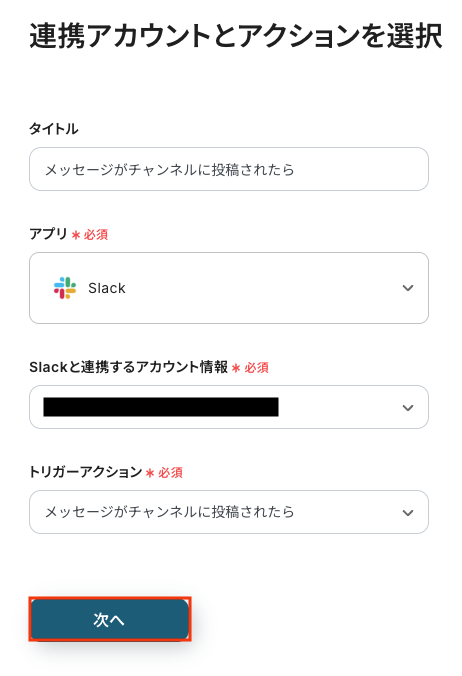 Slackと連携するアカウント情報に問題がなければ、「次へ」をクリックします。