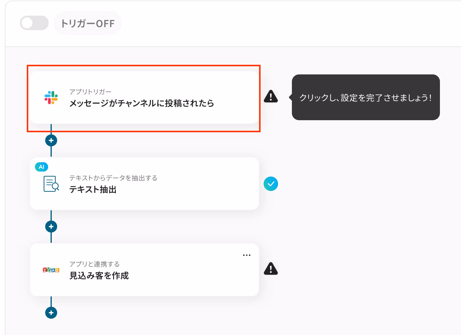 全てのSlack投稿ではなく、「#新規リード」といった特定のハッシュタグが含まれる投稿や、特定のメンバーからの投稿のみをZoho CRMに登録したい、というケースもあるでしょう。