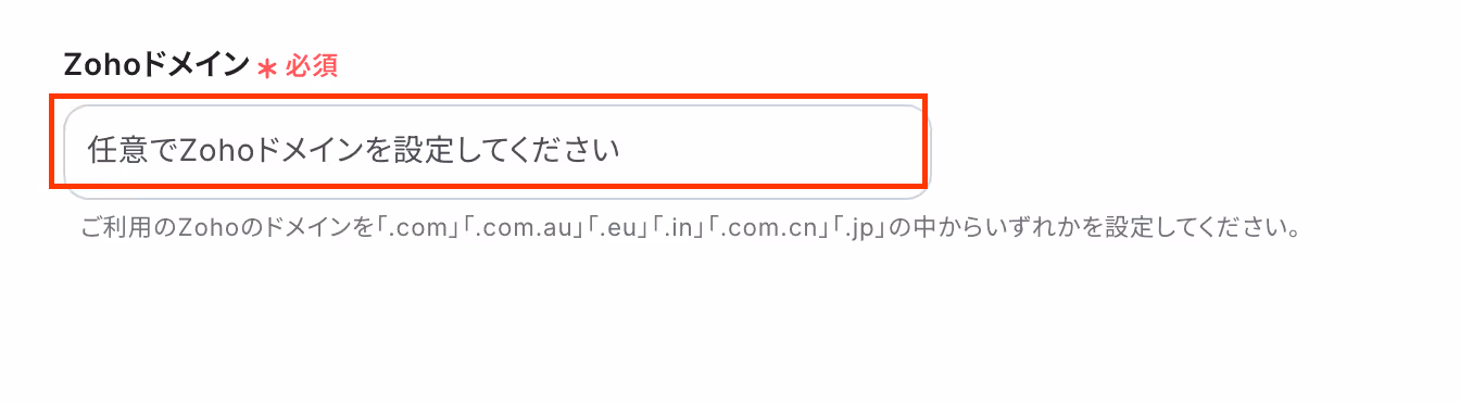 Zohoドメインはお使いのドメインを、下記の中から選択して入力してください。