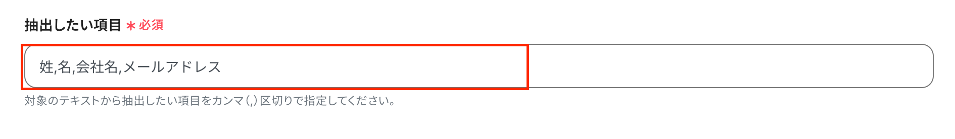 姓、名、会社名、メールアドレスは、添付画像のようにテキスト抽出の際に取得した値から選択します。