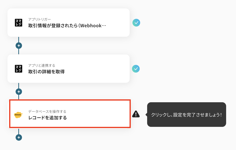 最後に、kintoneの指定したアプリに、スマレジの取引情報を追加する設定を行います。