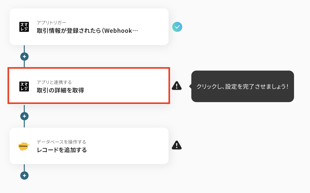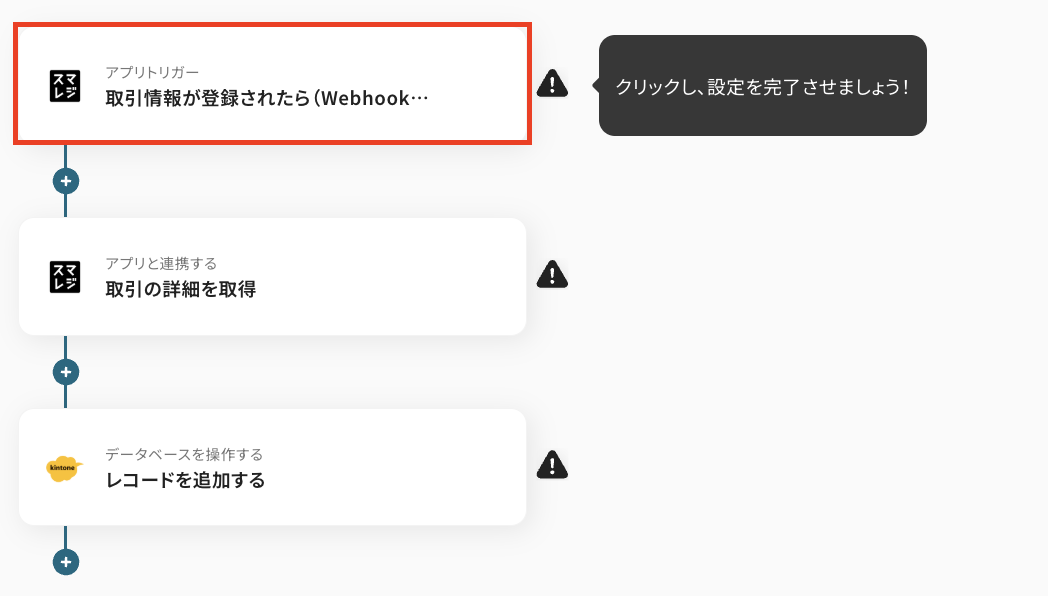コピーしたテンプレートの、「取引情報が登録されたら(Webhook起動)」をクリックしてください。