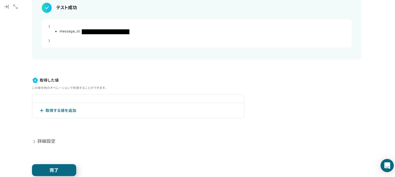 テストが正常に完了すると、「取得した値」に生成結果が表示されます。