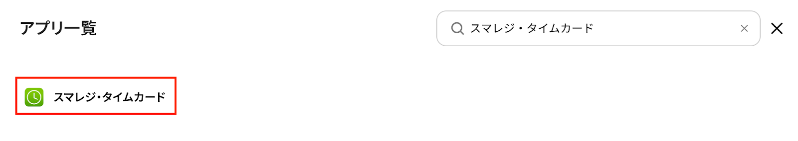 新規接続をクリックしたあと、アプリ一覧が表示されるのでスマレジ・タイムカードを検索してください。