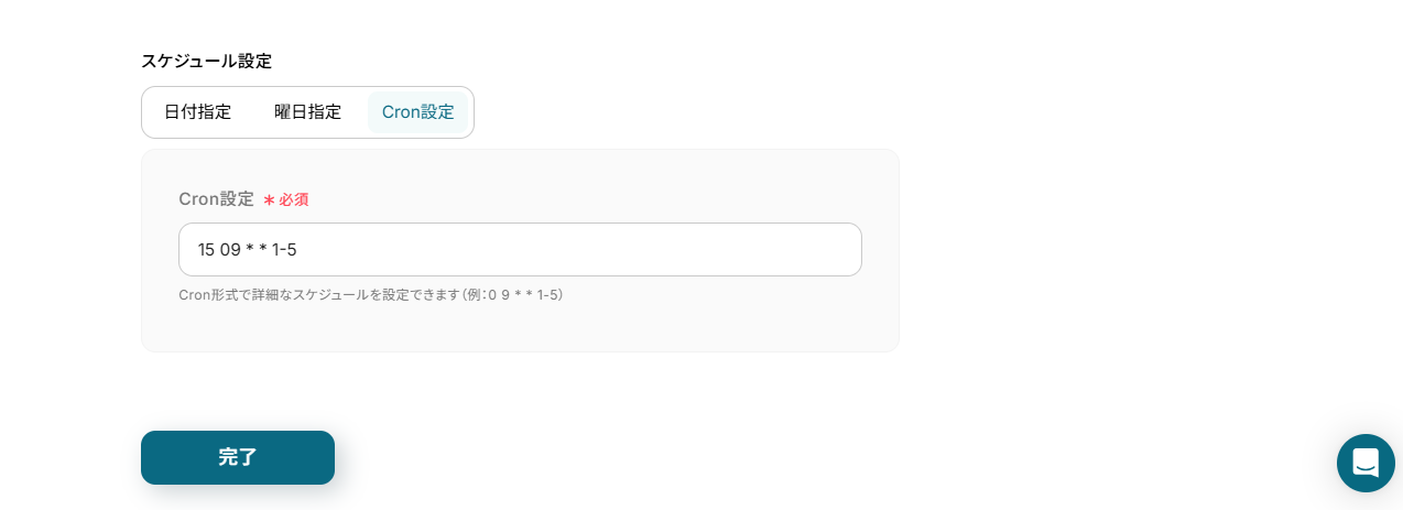 ※cron設定では、Cron形式で詳細なスケジュールを設定できます。