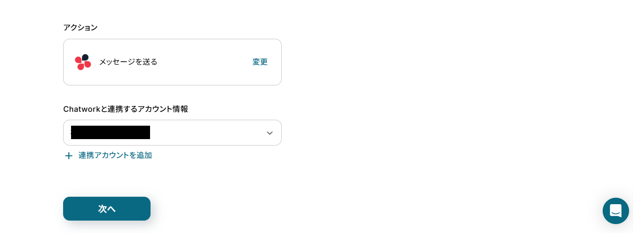 Chatworkと連携するアカウント情報を確認したら、「次へ」ボタンをクリックしましょう。
