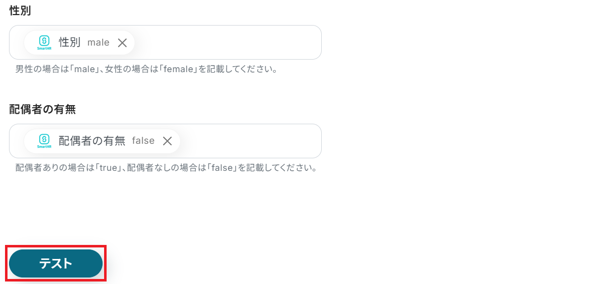 その後Yoomの設定画面に戻って再度「テスト」をクリックします。