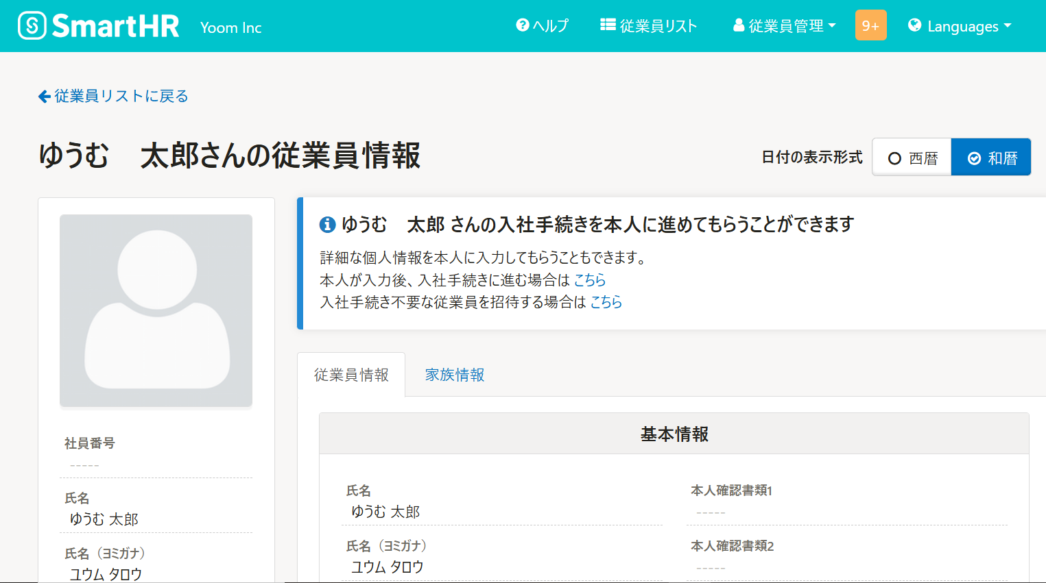 ここまできたら一旦SmartHRに移り、テスト用の従業員情報を登録しましょう。