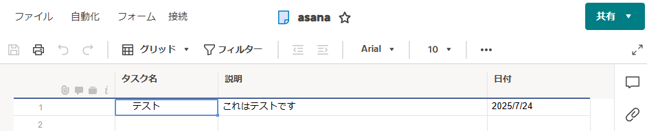 入力が完了したら、テストを実行し成功するか確認しましょう。Asanaにタスクが追加されているはずなので、チェックしてください。