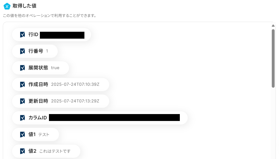 テストが成功すると、以下のような結果が表示されます。Smartsheetのシート情報が正しく反映されていれば問題ありません!