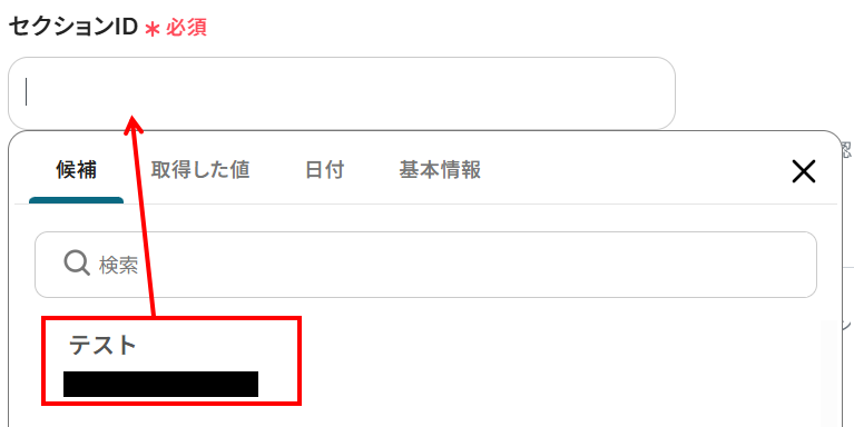 - セクションID:プロジェクトIDと同様に対象のセクションを選択しましょう。