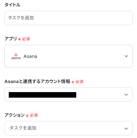連携アカウントとアクションの選択画面になるので、タイトルやアクションは先ほどと同様に、修正・確認をして次に進んでください。
