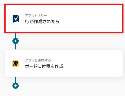 Googleスプレッドシートで行が追加されたらMiroでボードにカードを作成するフローです。