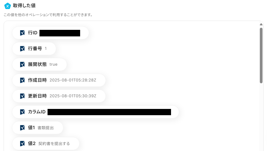※アウトプットとは、トリガーやオペレーションにて取得した値を指します。取得したアウトプットは、オペレーション設定時の値としてご利用いただくことができ、フローボットを起動する度に、変動した値となります。