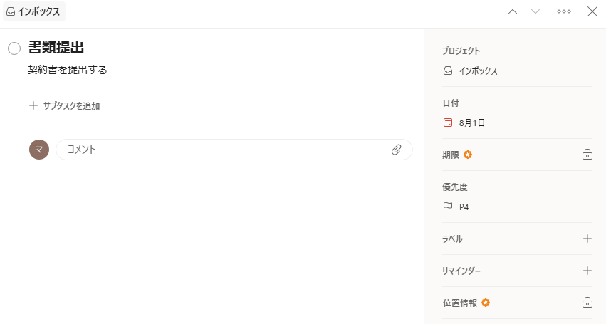 成功すると、Todoistでタスクが作成されるので、先ほど設定した内容が反映していればOKです!