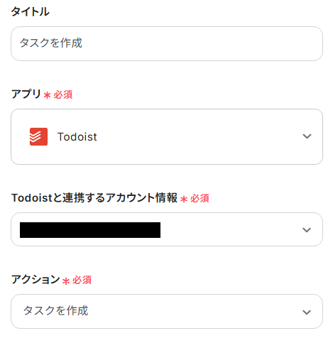 次に、Todoistに作成するタスクの内容を設定します。