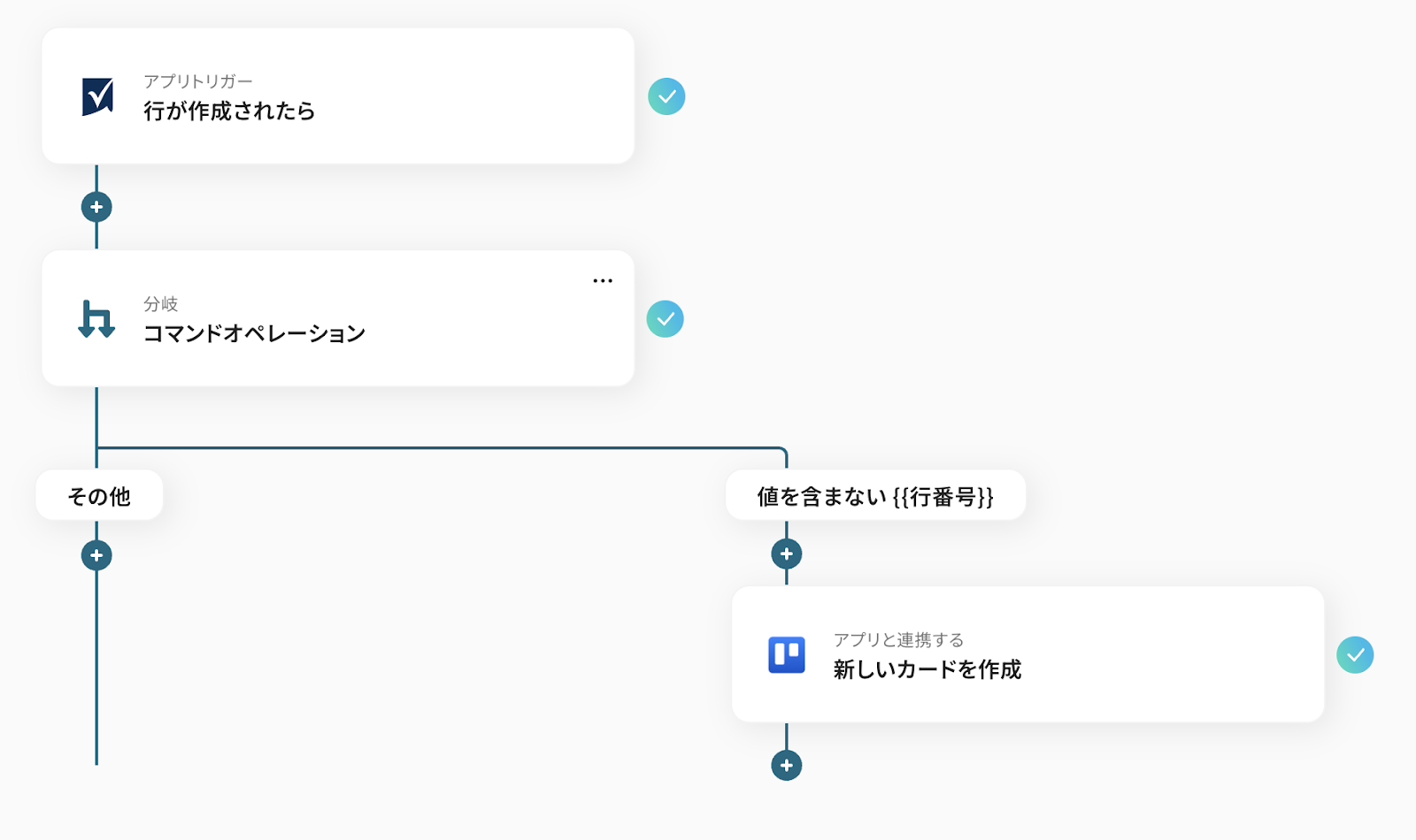 例えば、Smartsheetの行情報を基にTrelloのカードを自動で作成したり、特定の条件に合致するデータのみを連携させるといった操作が実現できます。