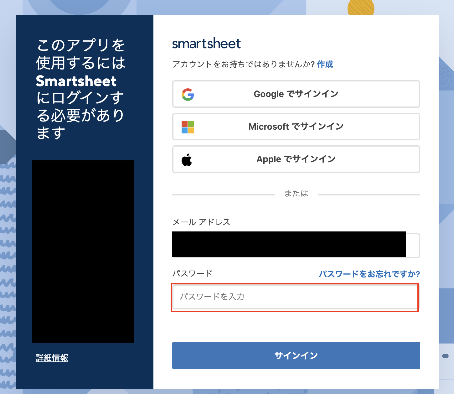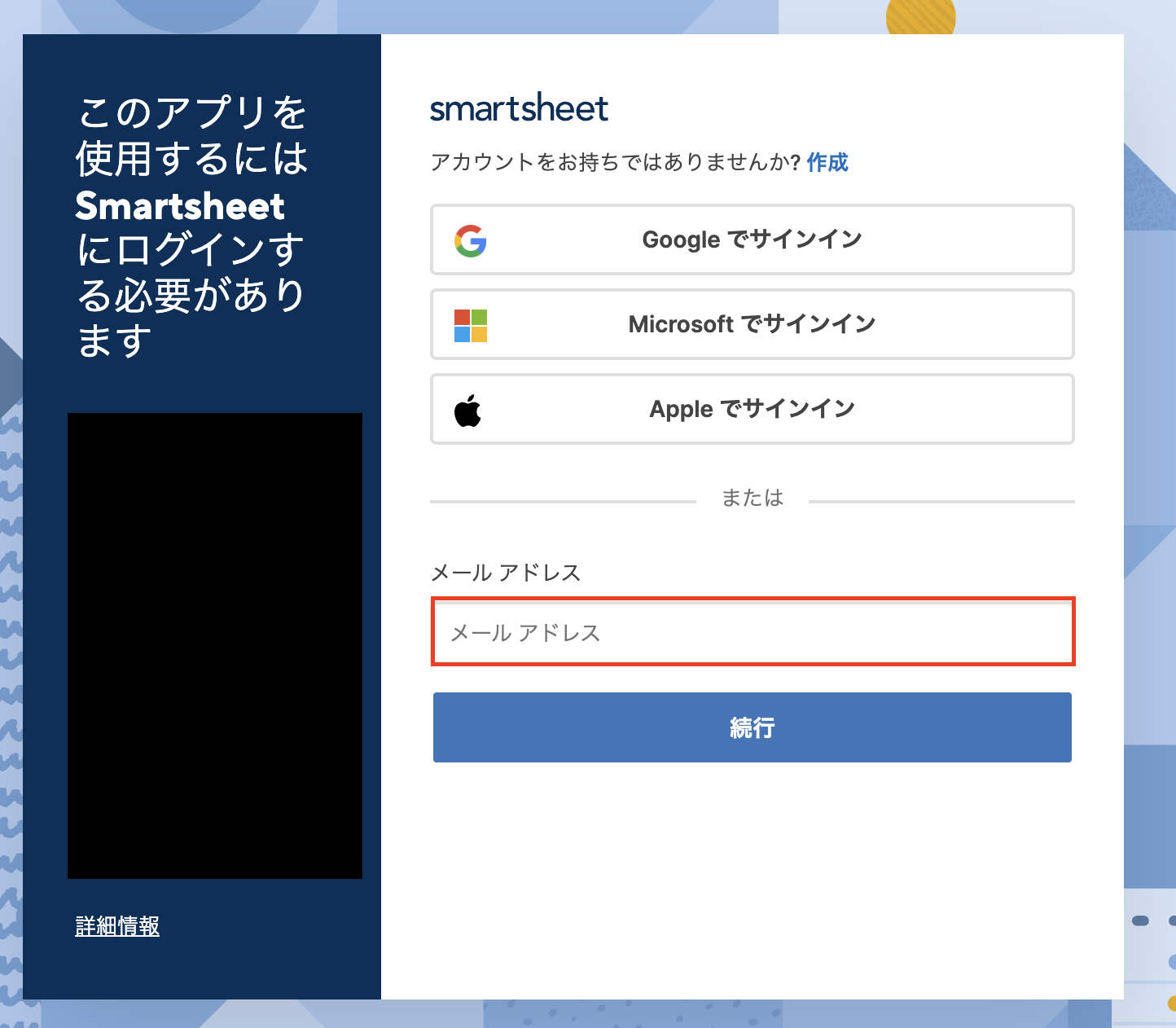 Smartsheetのログインページに移動しますので、メールアドレスを入力しましょう。