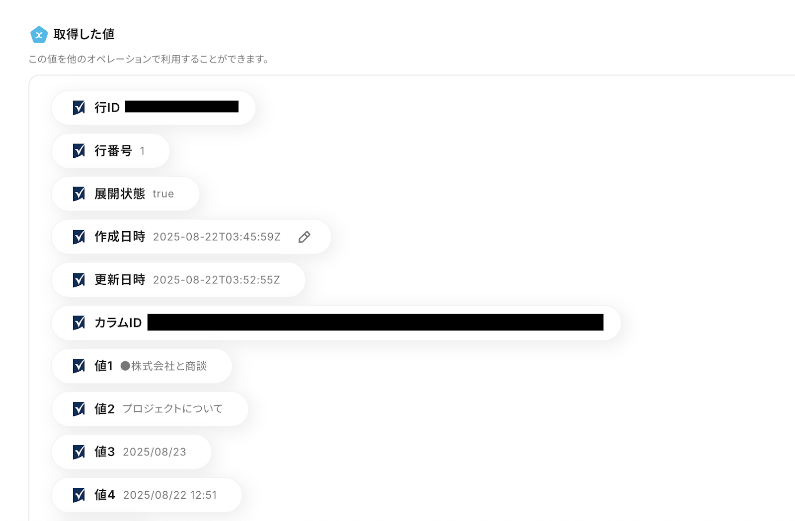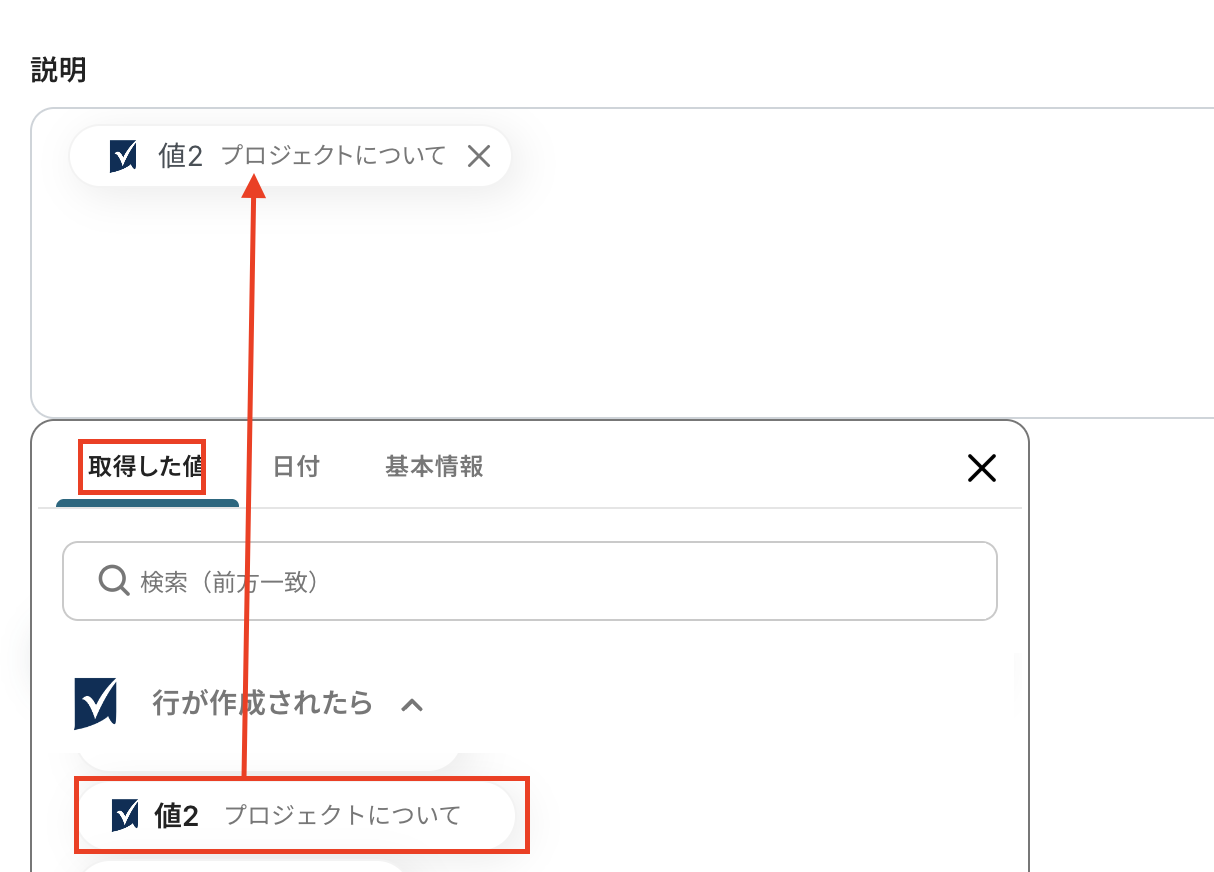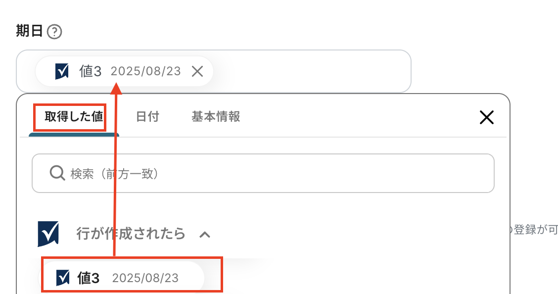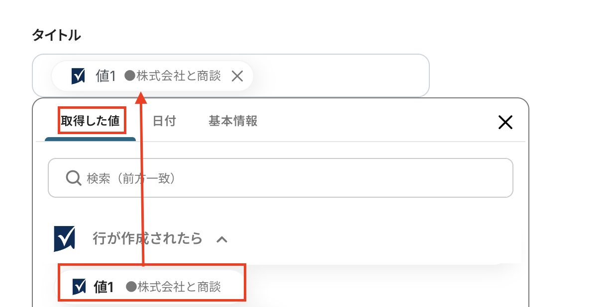 タイトルと期日はSmartsheetの取得した値を活用します。