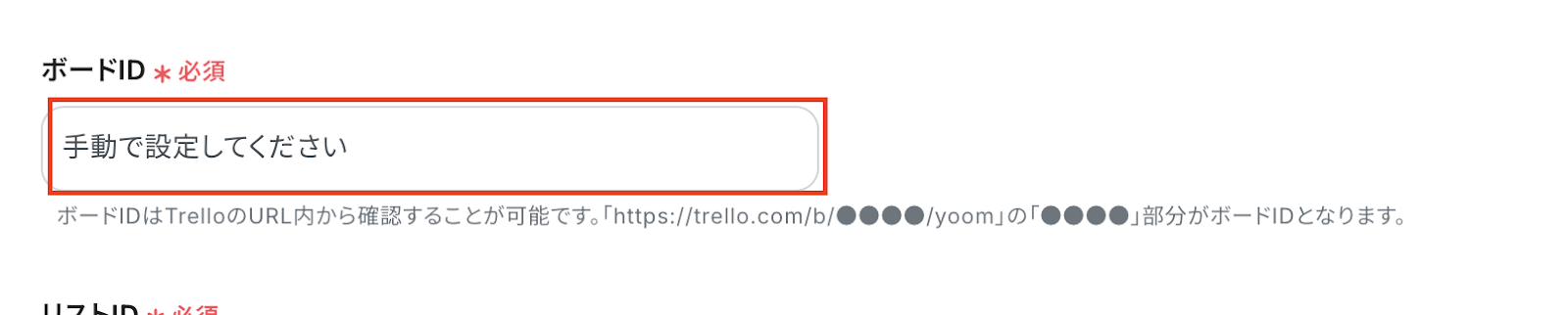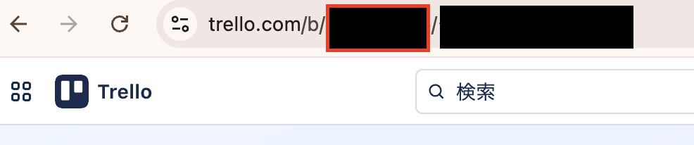 ボードIDはTrelloの該当するデータベースのURLの赤枠内です。