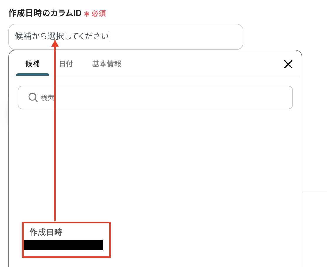 このアクションでは作成日時を選択する必要があるので、必ず「作成日時」の列を追加しておきましょう。
