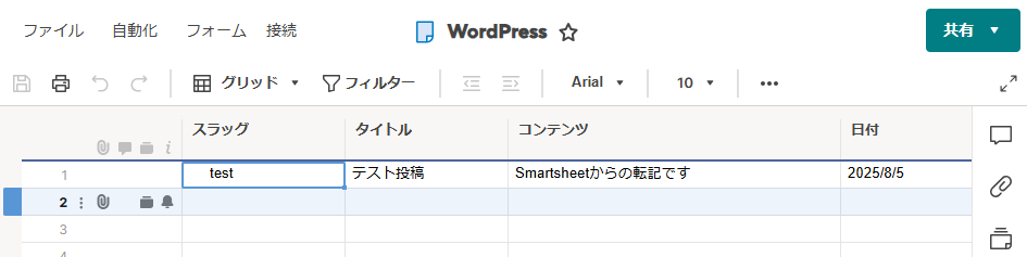- SmartsheetとWordPressをマイアプリ連携
