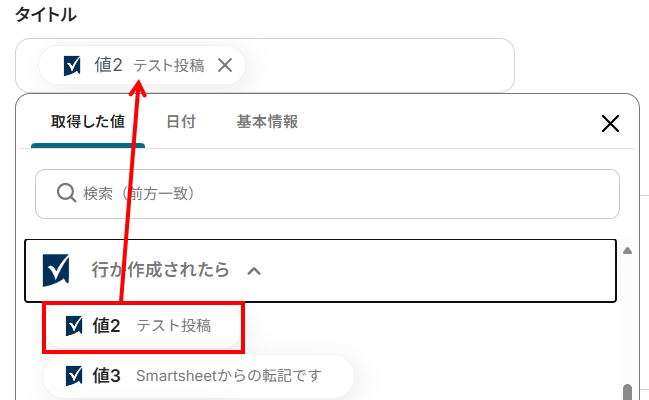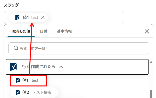Smartsheetで記載したスラッグを選択してください。