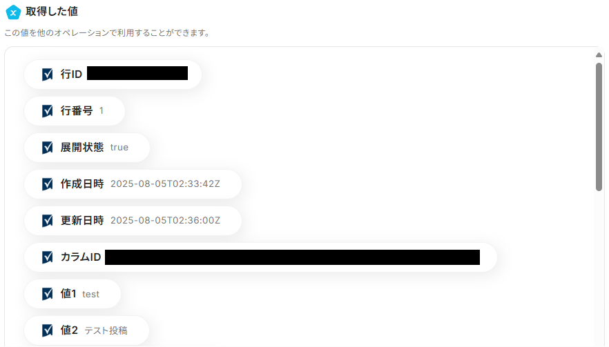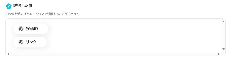 ※アウトプットとは、トリガーやオペレーションにて取得した値を指します。