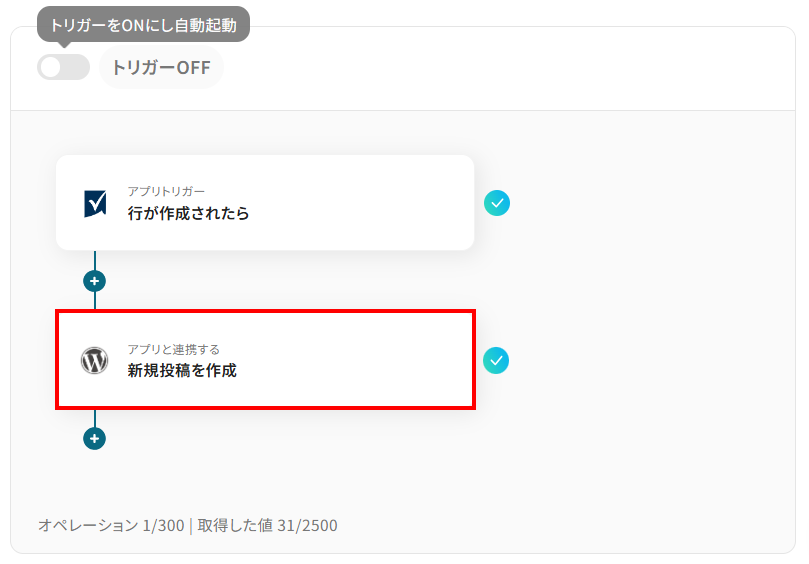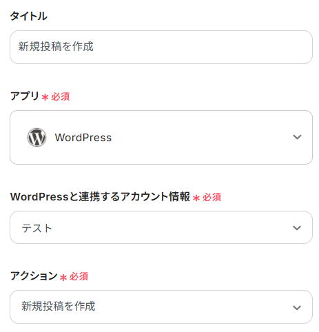 続いて、Smartsheetから取得したデータを用いて、WordPressに新規投稿する設定をしましょう。