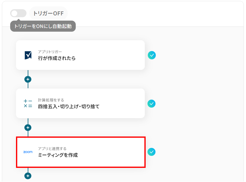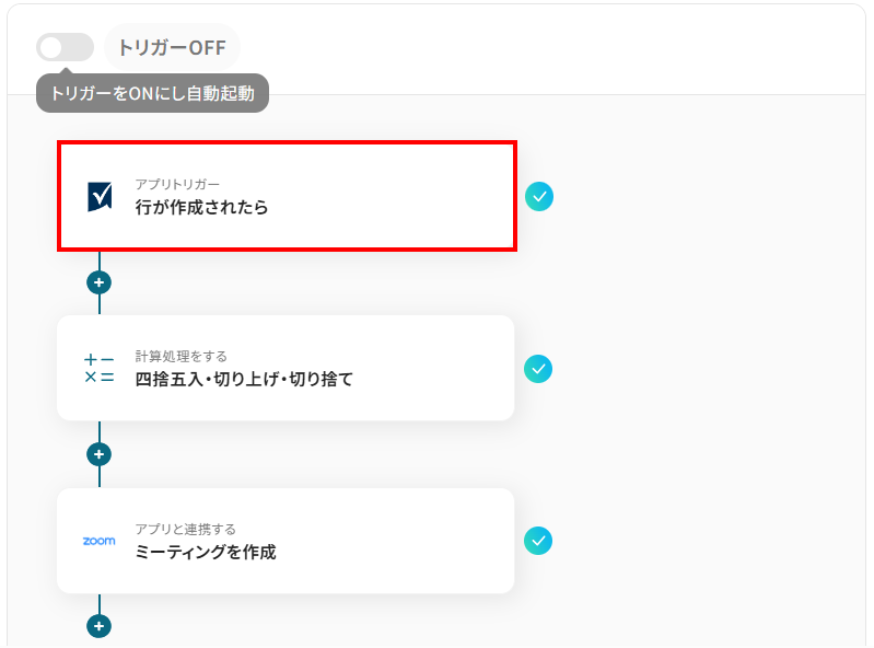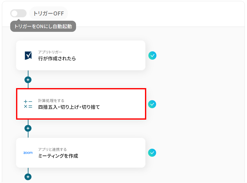 - Smartsheetのトリガー設定、数値データの切り捨て設定、Zoomのアクション設定