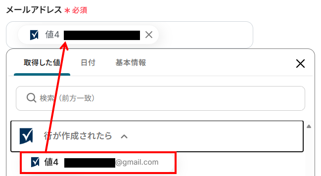 - アクション:テンプレート通りに「行が作成されたら」のままで大丈夫です。