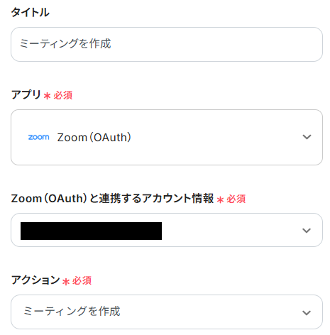 ・Zoomのプランによって利用できるアクションとそうでないアクションがあるため、ご注意ください。