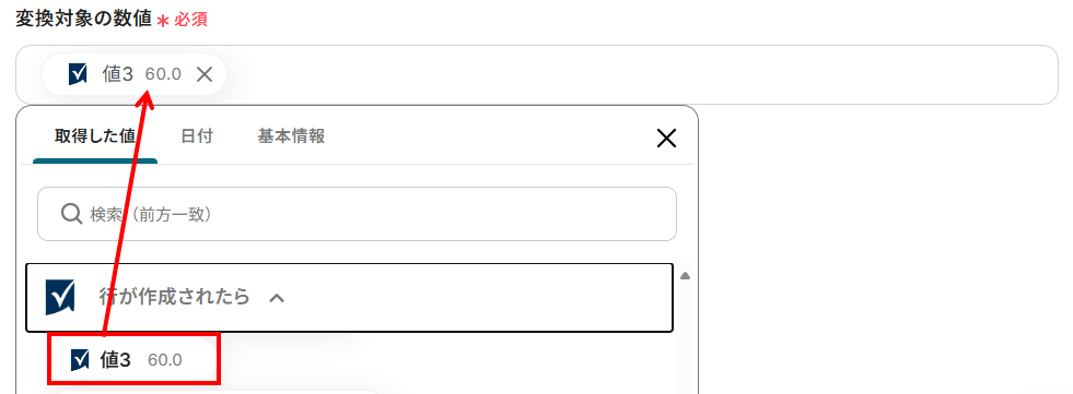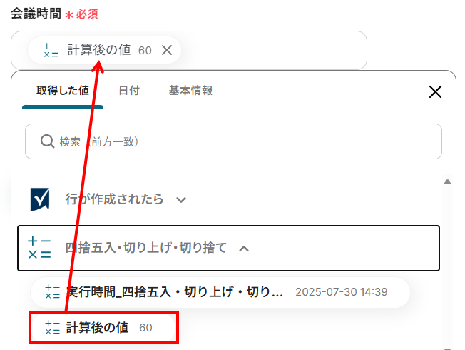 続いて、Smartsheetから取得した会議時間のデータに小数点が含まれているので、整数にする設定をしましょう。