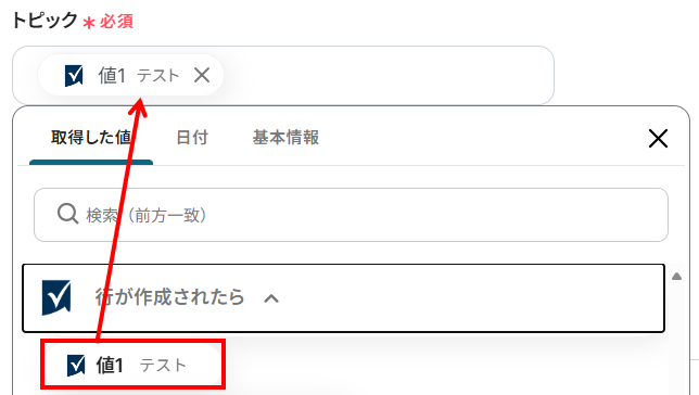 ※アウトプットとは、トリガーやオペレーションにて取得した値を指します。取得したアウトプットは、オペレーション設定時の値としてご利用いただくことができ、フローボットを起動する度に、変動した値となります。詳しくはこちらをご覧ください。