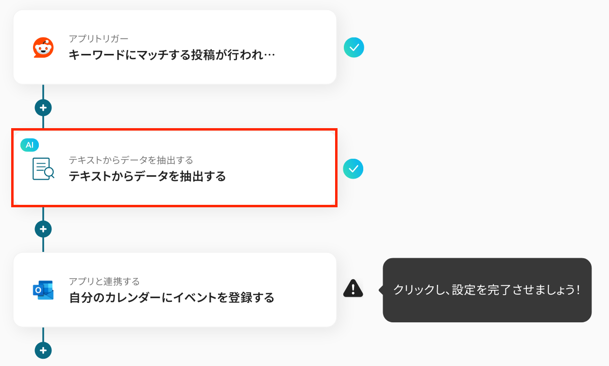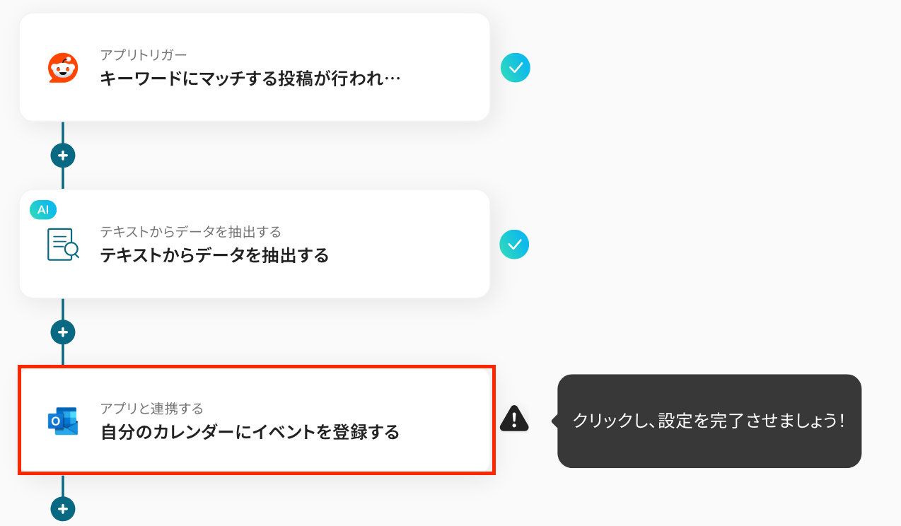 このワークフローを活用すれば、指定したキーワードにマッチするRedditの投稿を自動で検知し、Outlookにイベントとしてスケジュール登録ができるため、情報収集からスケジュール管理までを円滑に進めることが可能です。