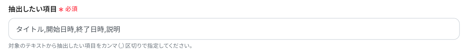 「対象のテキスト」:データを抽出したいテキストを設定します。