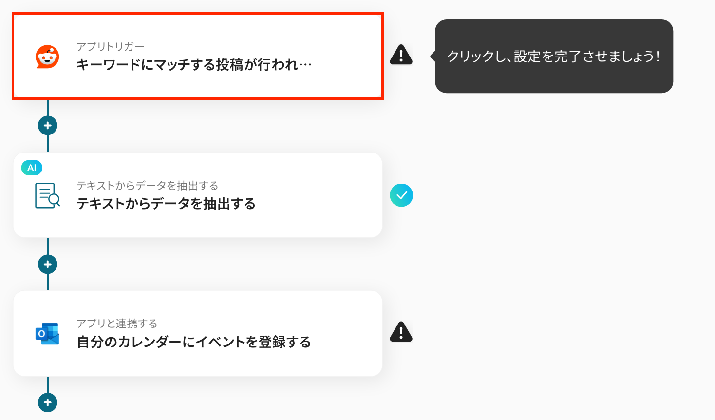 このワークフローを活用すれば、Redditで指定したキーワードにマッチする投稿を自動で検知し、Outlookへのイベント登録からMicrosoft Excelへの記録までの一連の流れを自動化できます。