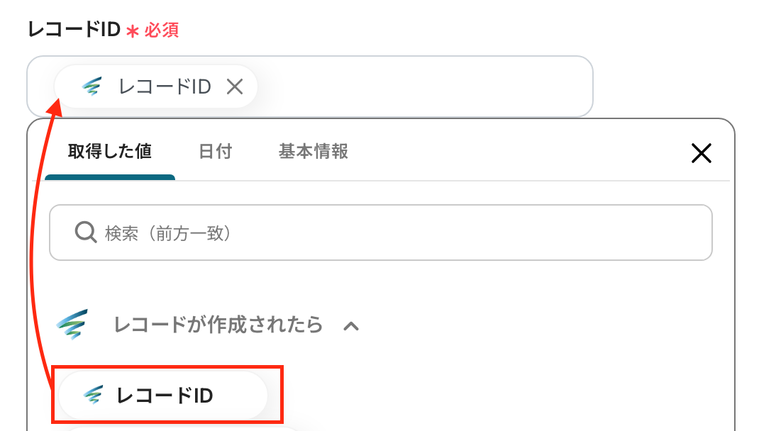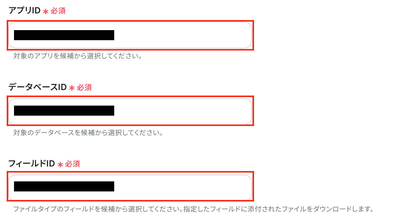 続いて、「アプリID」と「データベースID」を設定しましょう!入力欄をクリックして表示される「候補」から選択可能です。