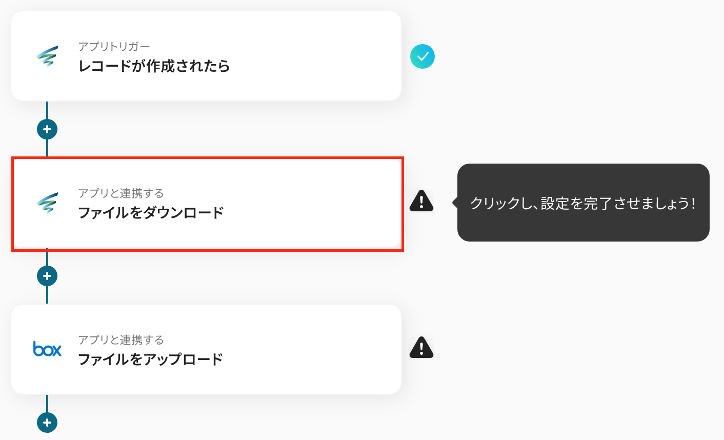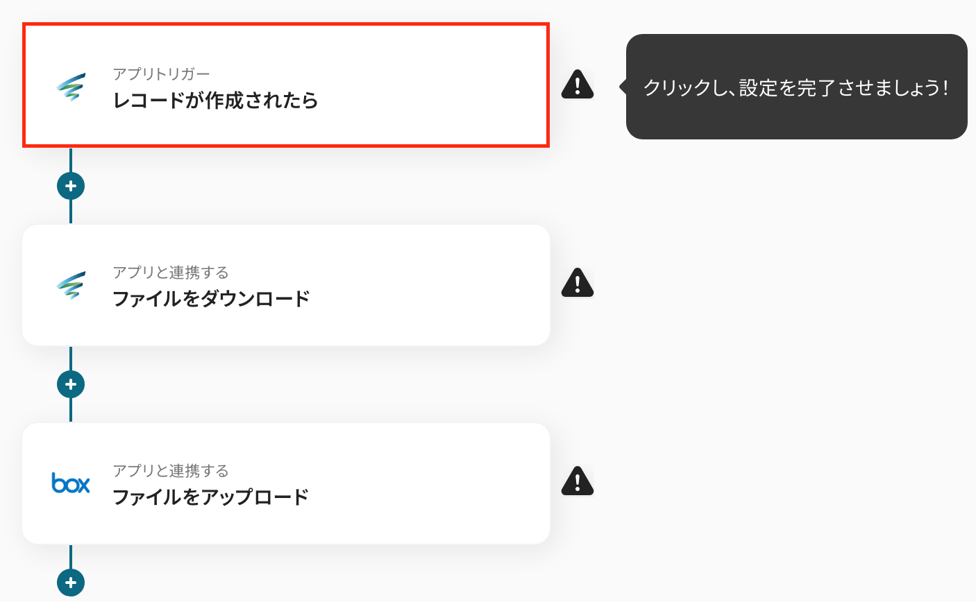 ここからは、「SPIRALでレコードが作成されたら、対象のデータベースにある関連ファイルをBoxにアップロードする」フローの設定をしていきます!
