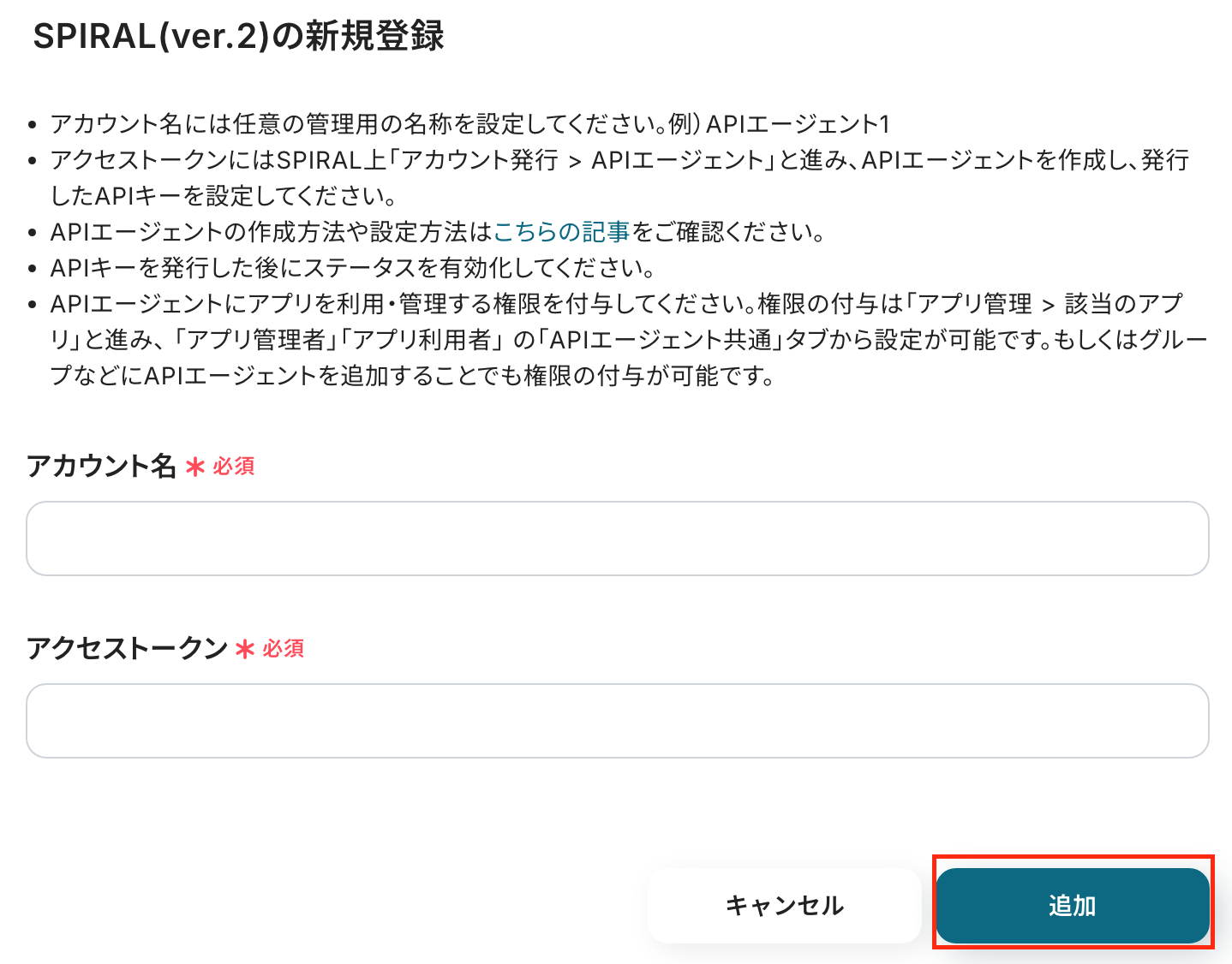 ここでSPIRALに移動し、レコードを作成してください。
