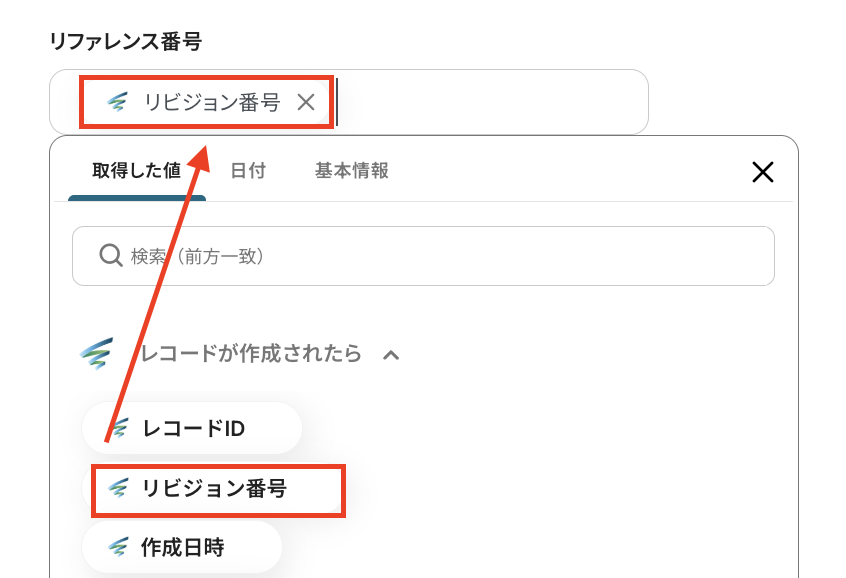 アウトプットとは、トリガーやオペレーション設定時に、「テスト」を実行して取得した値のことを指します。