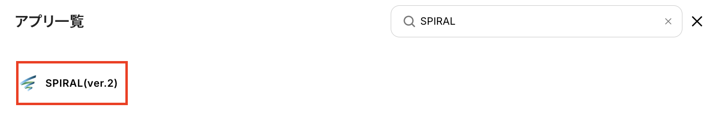 検索窓でSPIRALと入力し、表示された候補からSPIRALを選択します。
