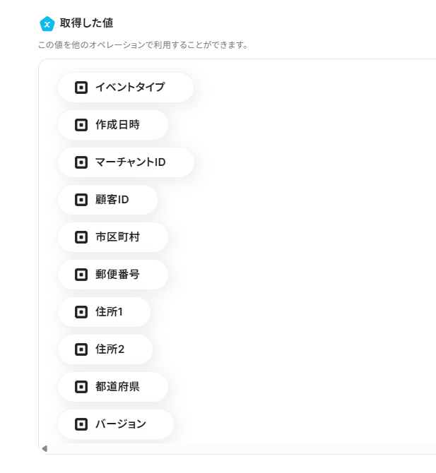 アウトプットとは、トリガーやオペレーション設定時に、「テスト」を実行して取得した値のことを指します。