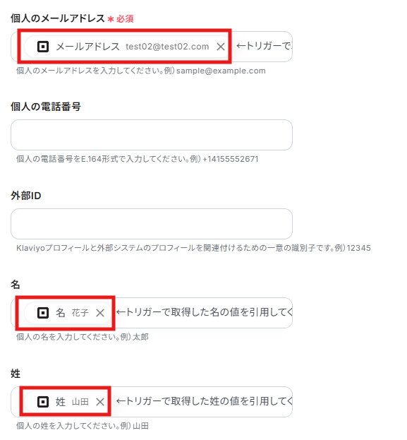 これにより、毎回変動する情報を手動で入力する必要がなくなり、効率的に連携できます!